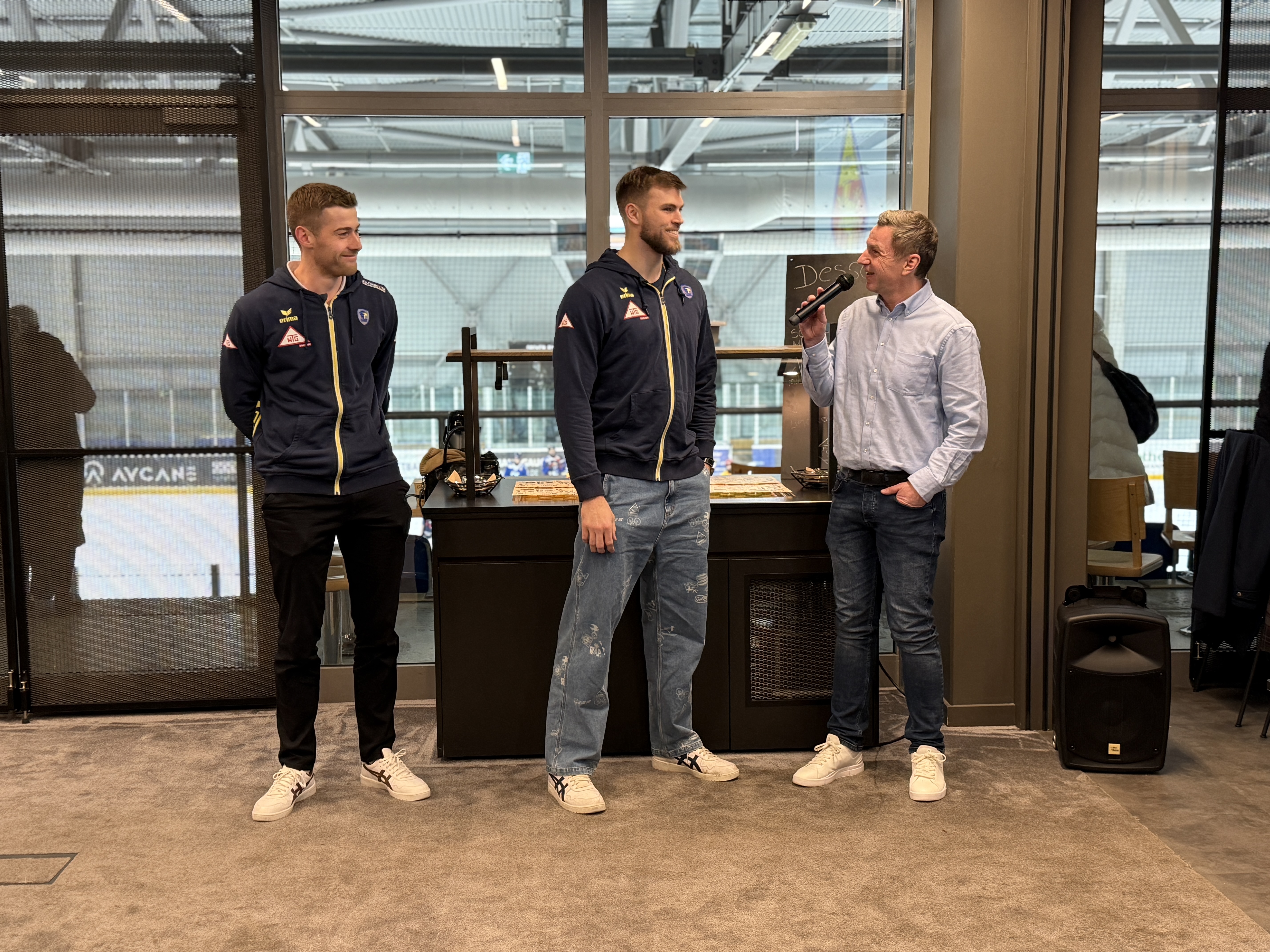 In einer lockeren Interviewrunde gaben die beiden Löwen-Akteure Einblick in ihren aktuellen Trainingsalltag, gaben ihre Einschätzung zur WM ab und unterhielten die Anwesenden mit dem ein oder anderen lockeren Spruch. Anschließend mischten sich der Linksaußen und der Kreisläufer unter die Gäste, nahmen sich Zeit für Fotos, Autogramme und persönliche Gespräche.